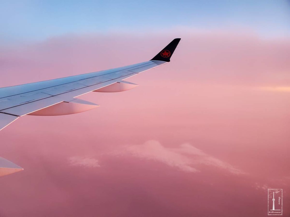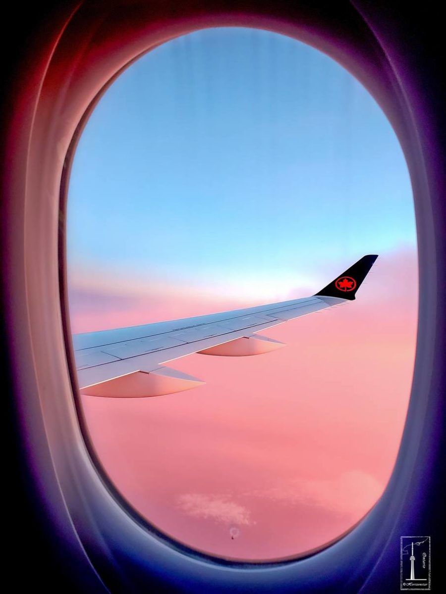 粉色的云朵,粉色的鸡翅膀。飞了这么多年,算是难得一见的奇景。坐在窗边的LP赶紧手机拍下来。