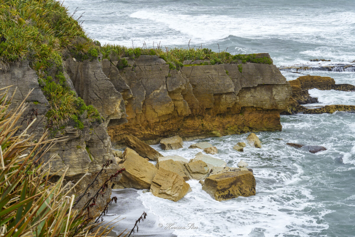 离开Truman Track,往下再开几分钟,就到了Pancake Rocks & Blow Hole Track(千层饼岩)。