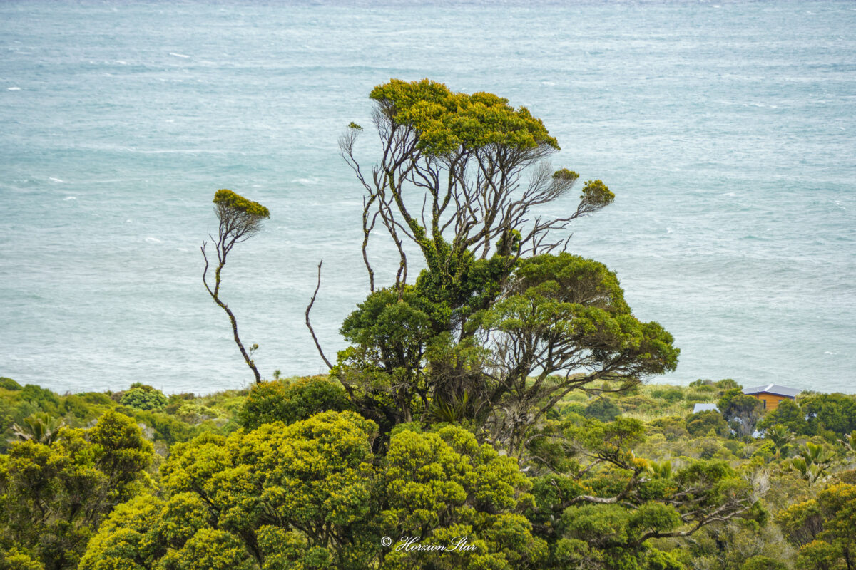 几十米到顶,一股飓风吹来,差点没喘上气。前方的景色被overgrown的植物遮挡了一些,它们在风中使劲的摇摆。着急忙慌的拍了几张,再不自己下去风就把你吹下去啦,所以我还是识相一点,自己走下去。
