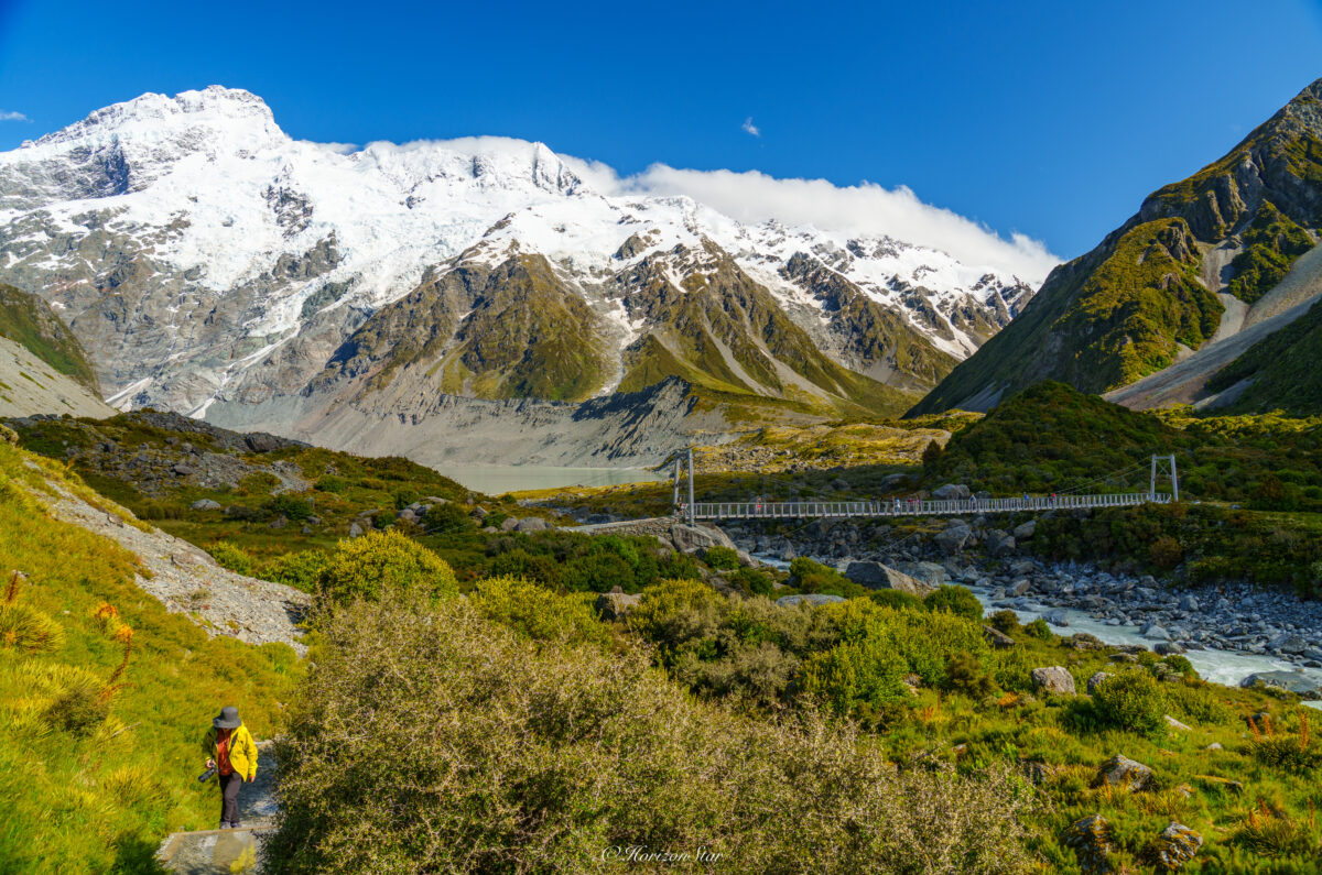 First Swing Bridge就在下面。观景台虽然人很多,也没看到在这里就转头回去的,再往前的Hooker Valley Track上也没看到很多人,所以说他们都去哪里了呢?莫不是有个大家都知道就我们不知道的时空门或者传送门什么的?