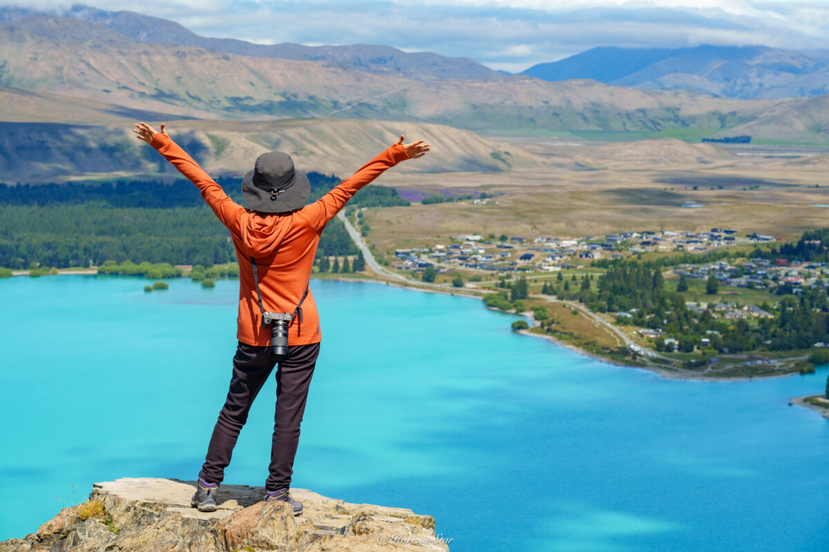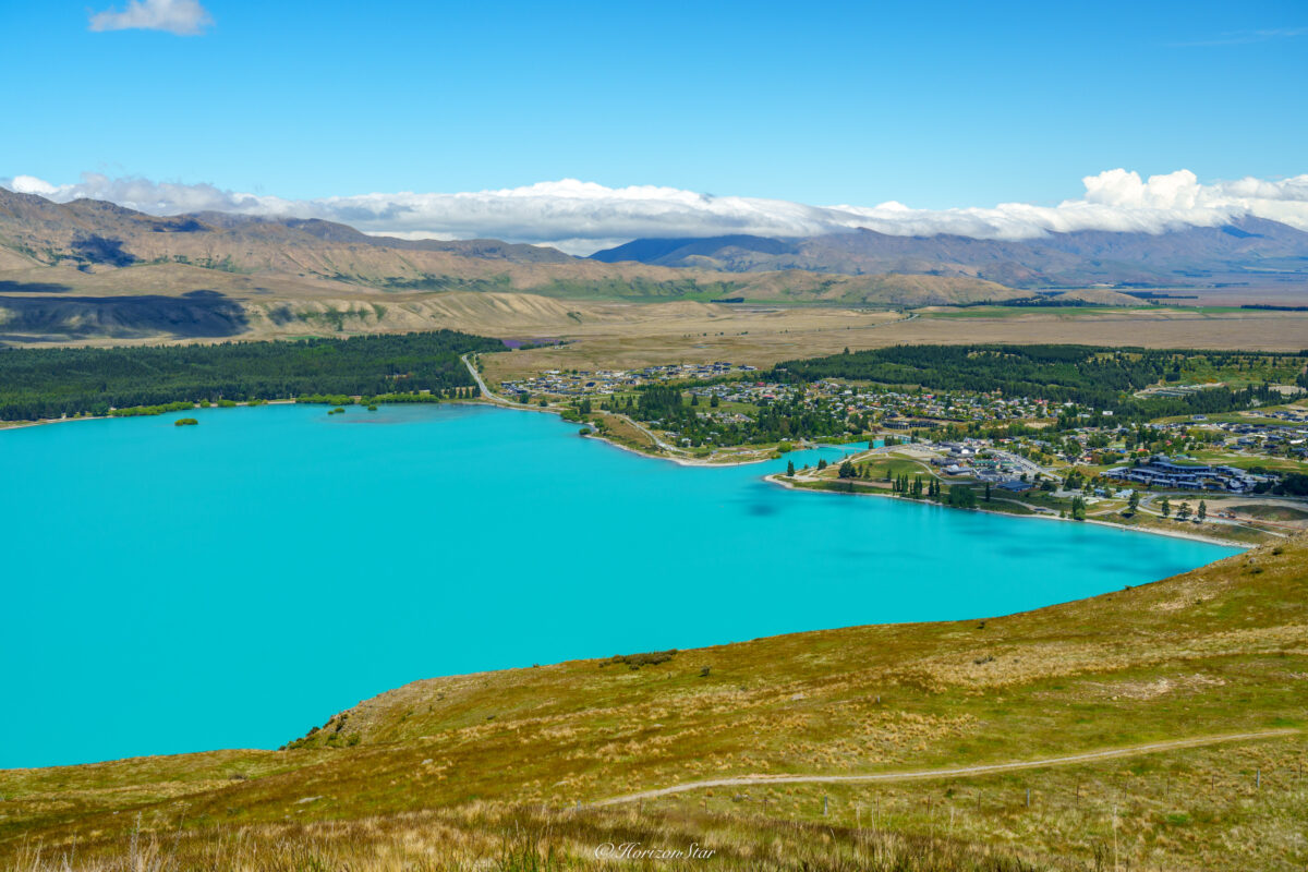 去Tekapo镇前,先拐去昨天没去的天文台。虽然Google地图说那边关门了,但大叔记得牌子上写的是周一到周五10点到5点。果然开到那里开着门,Google的时间应该是天文台的时间。买了票,顺着羊肠小道开上去,终于看到了最经典的Lake Tekapo的全景。