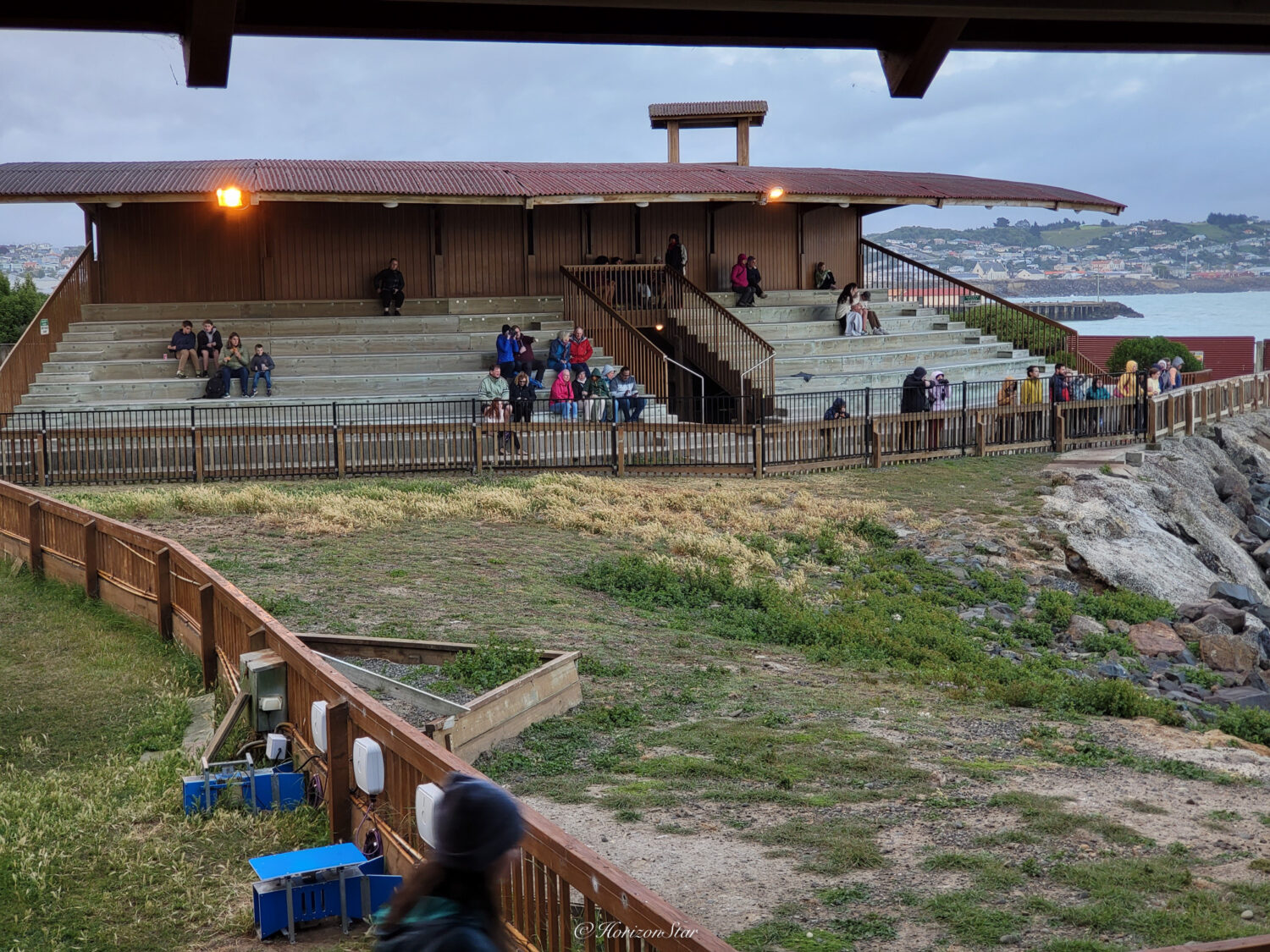 这时候蓝企鹅还都没回来。它们只有到天黑以后才会从海里游回来,标准的 997 啊。工作人员在使劲的瞭望,看看有没有先回来的。一般天亮先回来的,就在海里游一游,等等小伙伴们,大家一起摸黑登场。