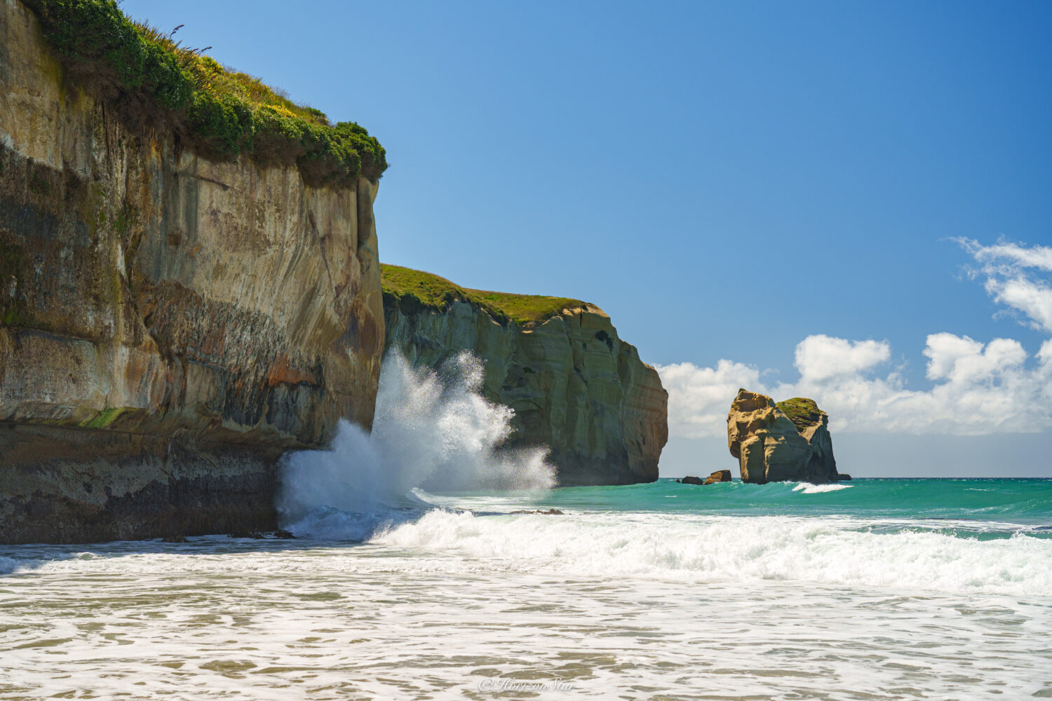 去 Tunnel Beach 前,先办几件事情。首先二姐要回昨天买了一大堆苏格兰纪念品的商店退货换货😂。再去昨晚地图上找的亚洲超市,终于找到了念慈菴的止咳糖浆。就是一小瓶超贵。再加个油,给轮胎充气。一切都办完了,就直奔 Tunnel Beach 而去。