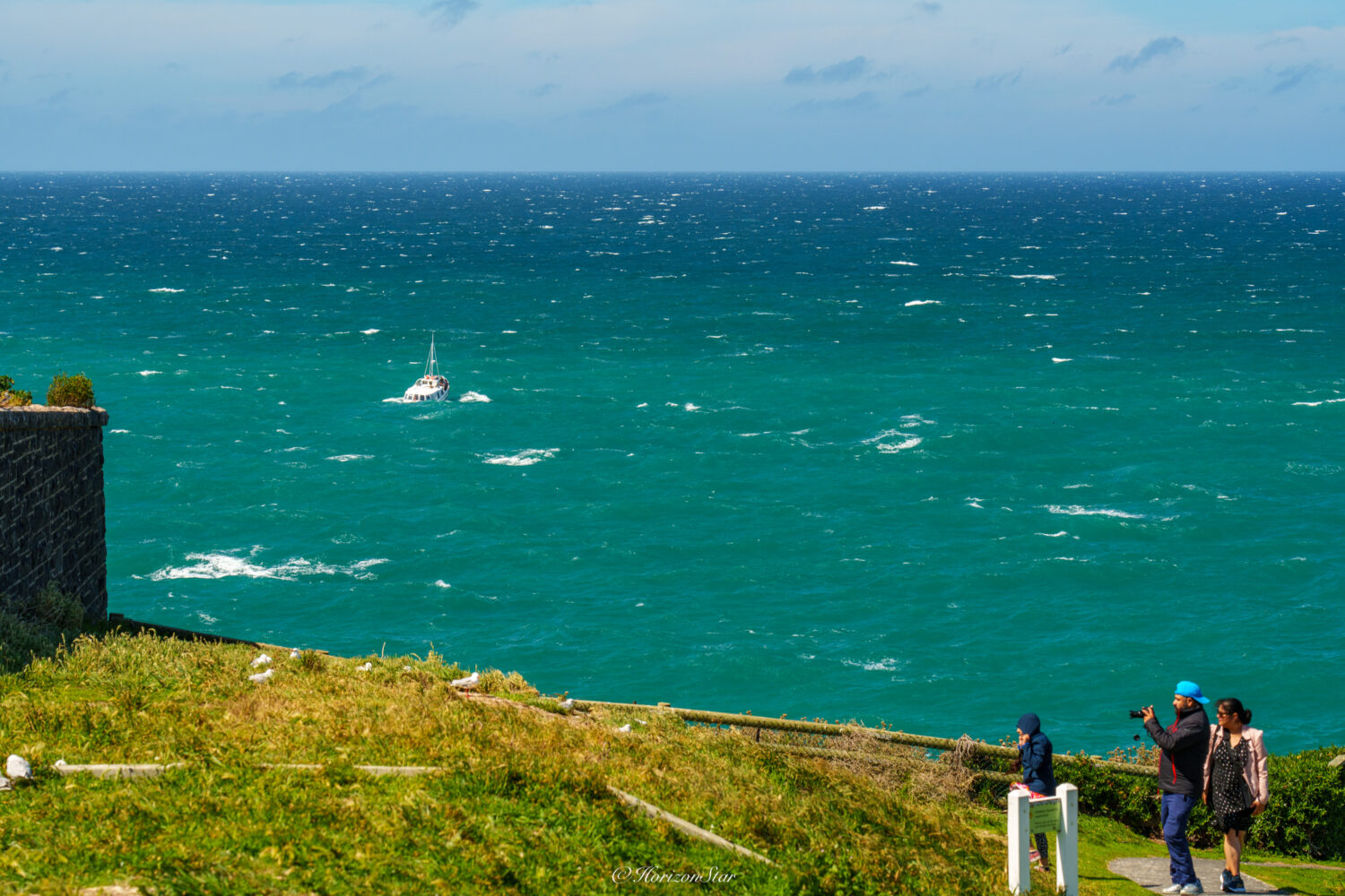 这里有游船专门出海看信天翁的和各种鸟类的。这时候风和日丽,海湾水面平静,船上的人估计都很惬意吧。他们并不知道不久将会经历什么。