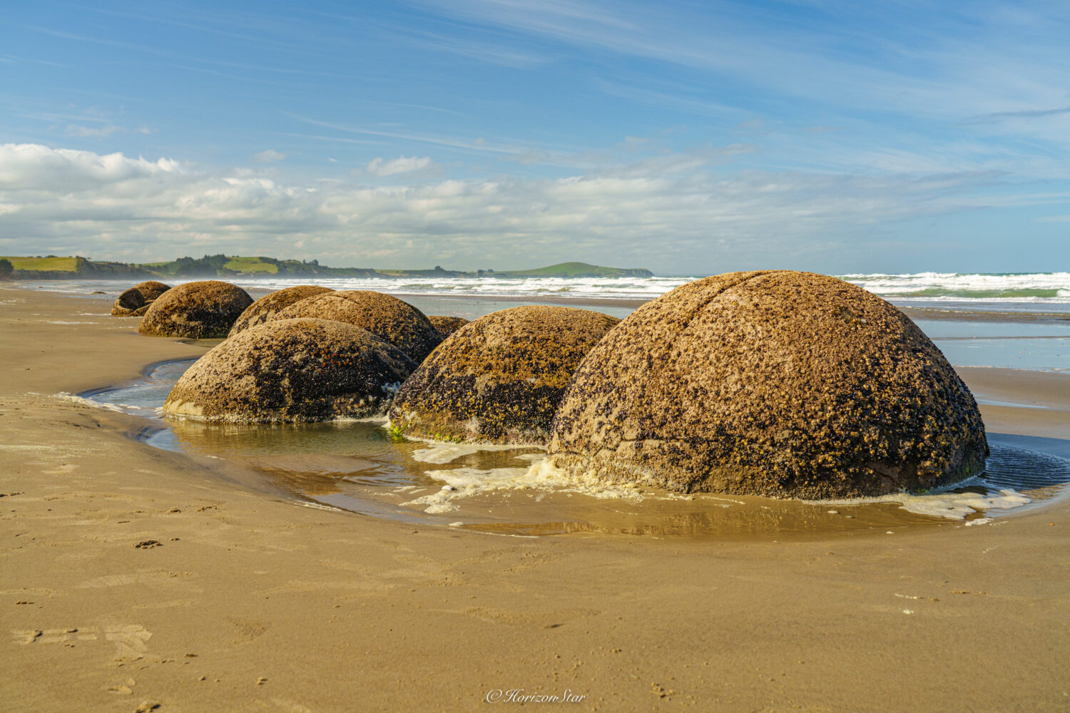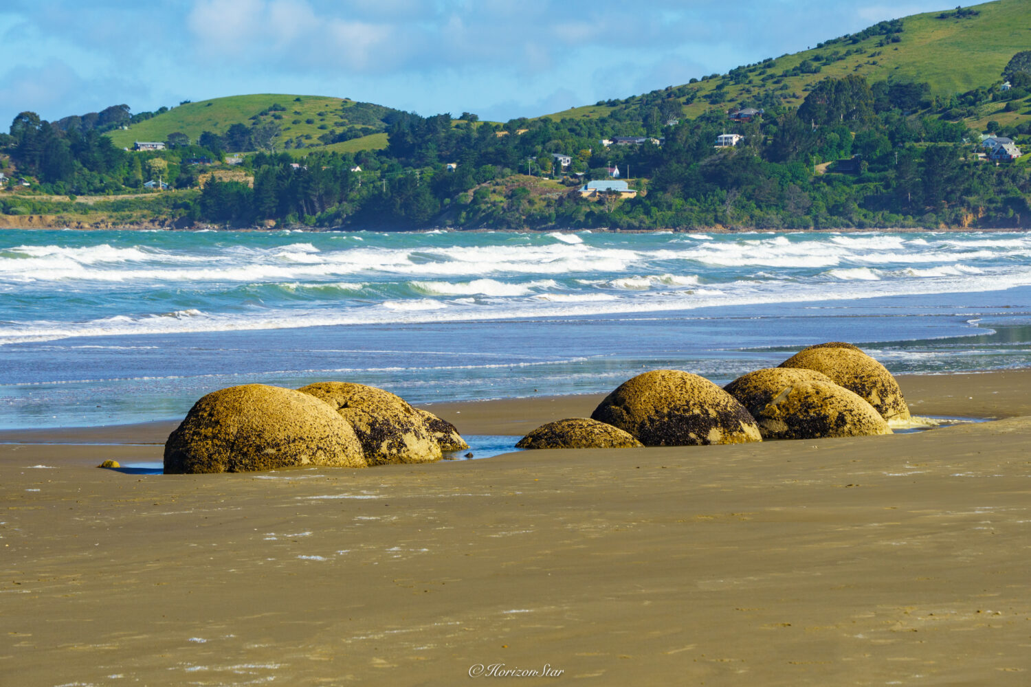 到Oamaru之前还要看一下大石头,Moeraki Boulders。