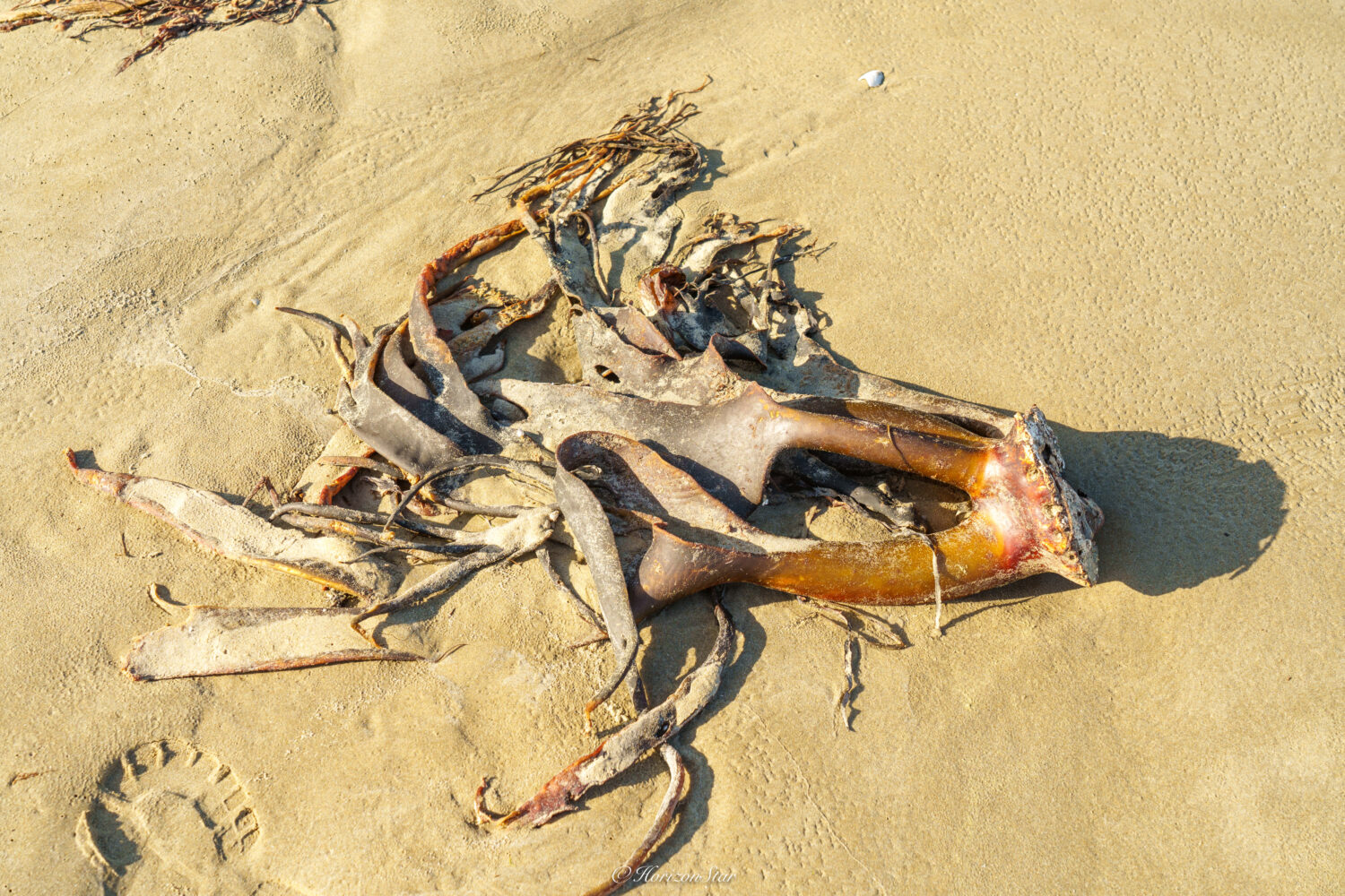 海滩上还有好多这种被海浪推上岸的海草,我们一开始还以为是海里的章鱼怪🐙,还低头仔细研究了一下,但也说不定真的是。