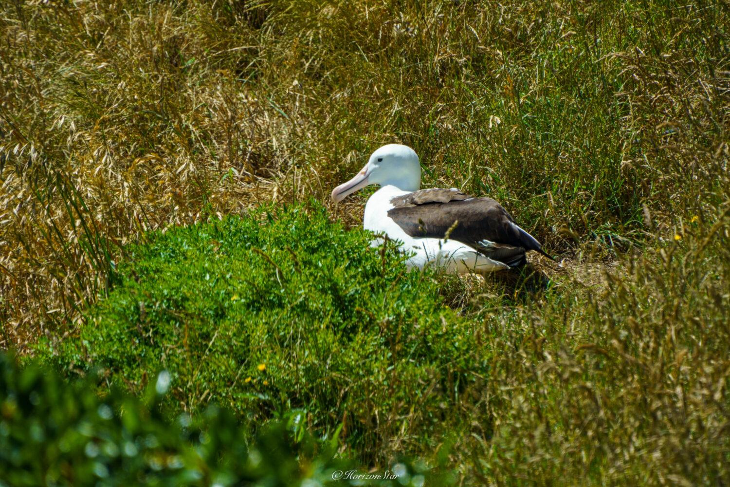 大家都憋在观察亭里看那六窝。问题是只有一只离得近。远的看不清,近的不动弹,一直在那里坐着。导游说今天风大,信天翁不太回来。偶尔看到一只在天上飞翔。