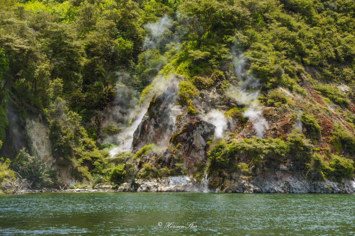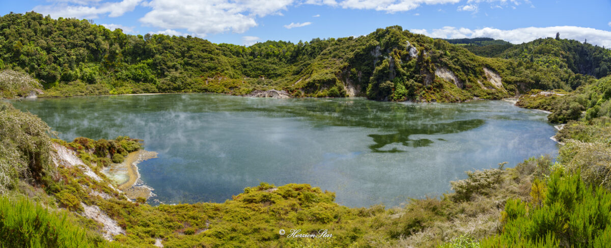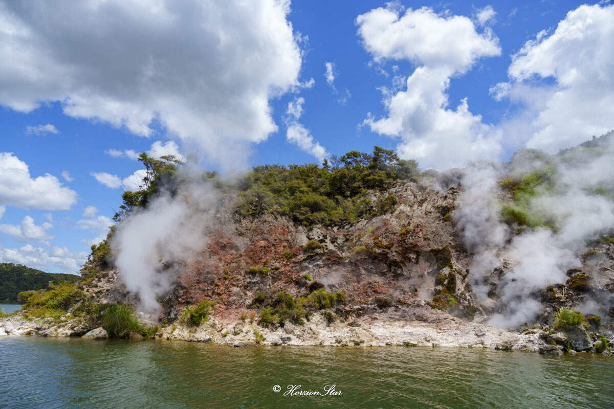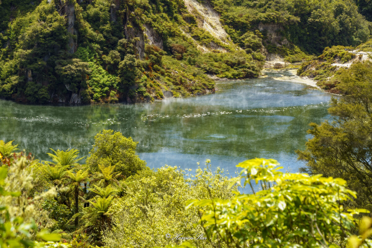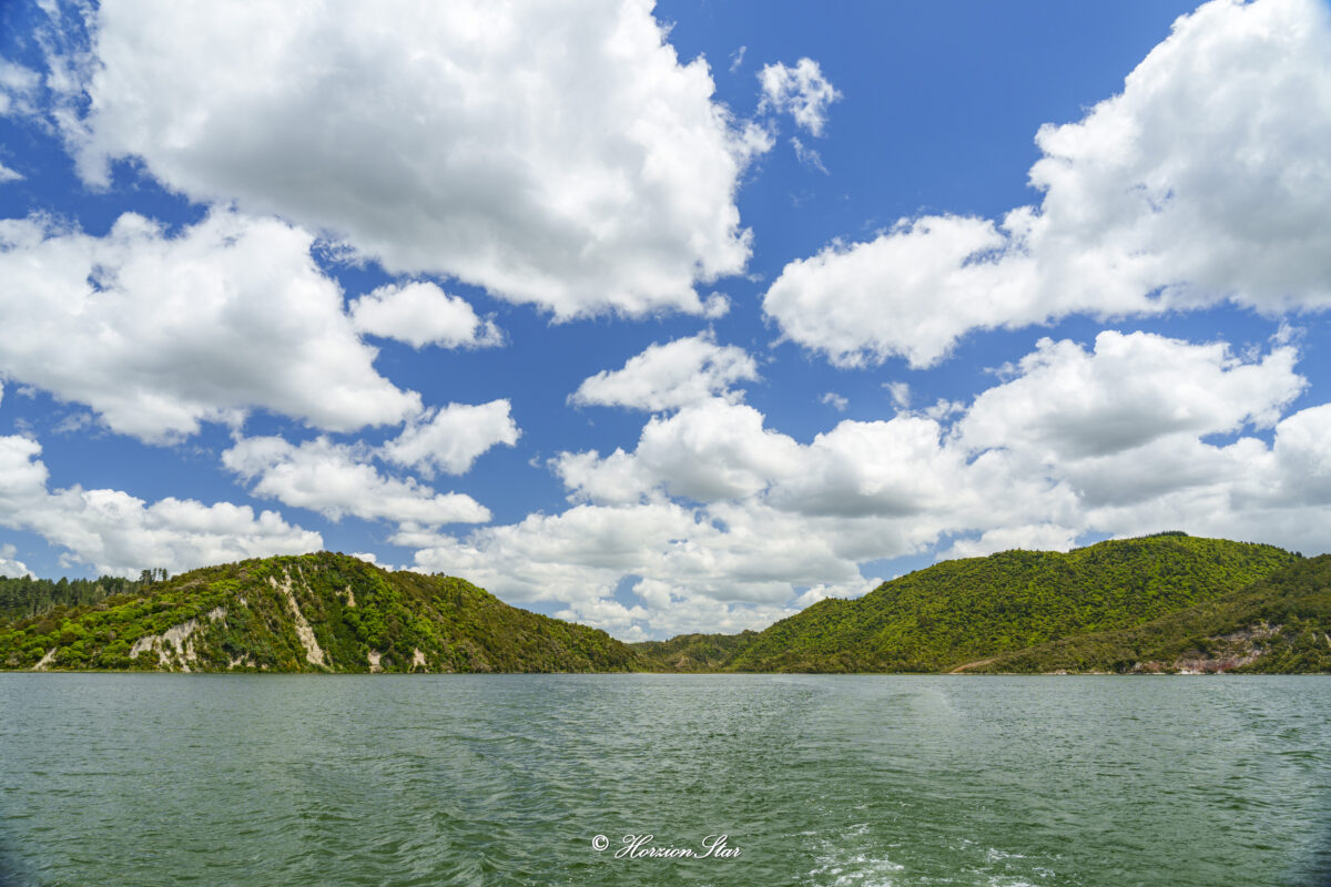 白云悠悠的从天上飘过,见证了1886年的火山大喷发。这个湖由此被扩大了20倍。