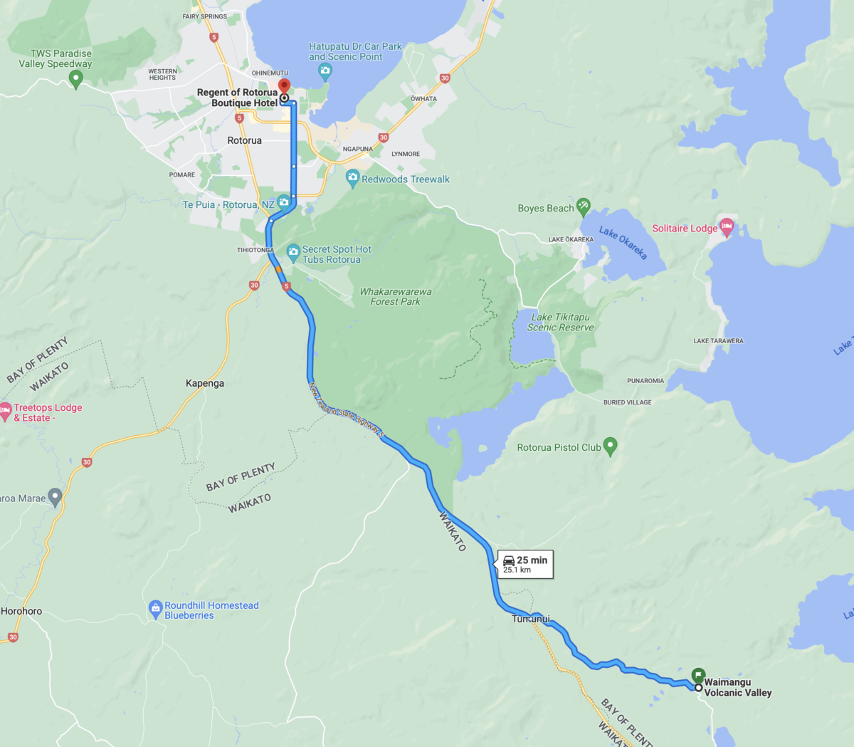 Rotorua这边可以玩的也有不少,比较奇特的是ZORB。就是把你放到一个存着一点水的塑料球里,然后把球推下山坡。让你体会一下衣服在洗衣机里的感觉。小镇位于活跃的地热地区,到处是温泉。而我们今天选择去的Waimangu Volcano Valley算是他周边最有名的一个了。
