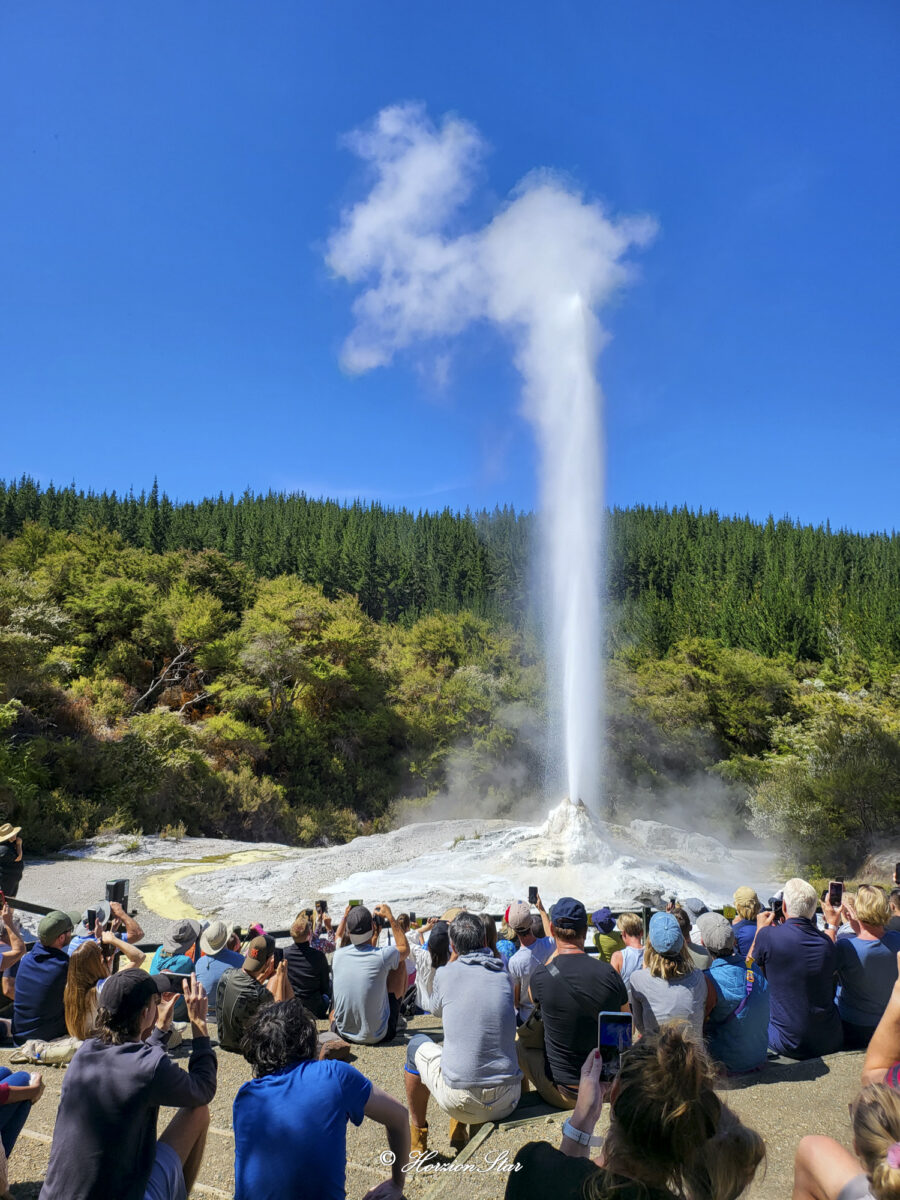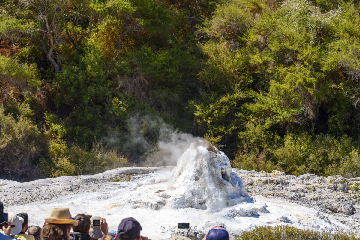 喷泉秀每周休息四天,今天是休息后第一天复工。从本周开始,每周开放增加了一天,变成四天了。我俩直呼幸运。如果昨天来这里而不是Waimangu的话,就看不着喷发了。