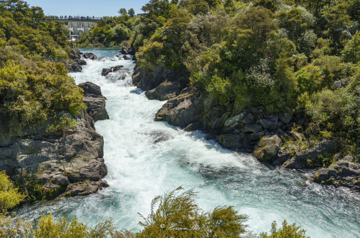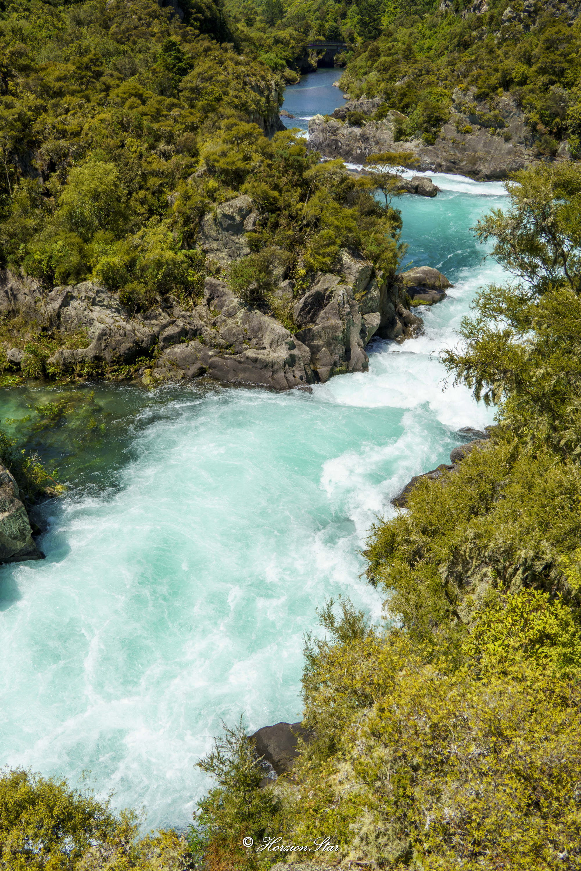 从停车场出来,来到大桥上。看大河从Lake Taupo滚滚而来