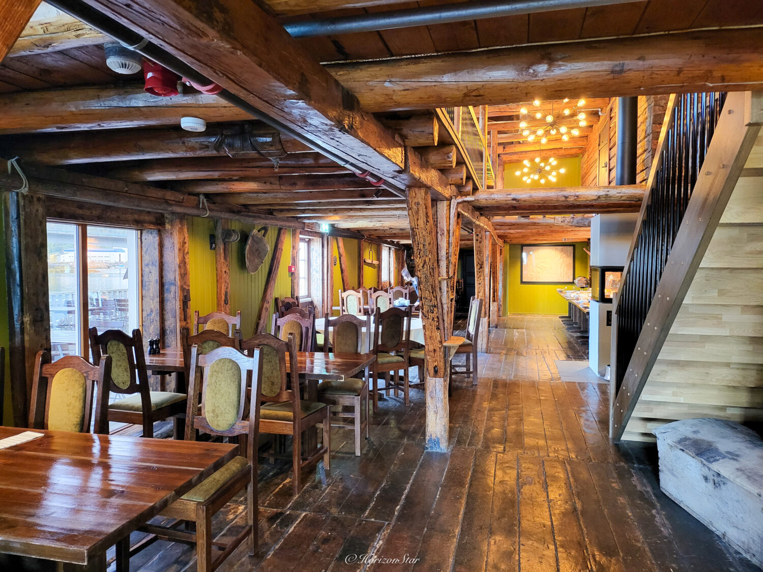 饭店装修很古朴,早餐台的食物也不是很多啦。