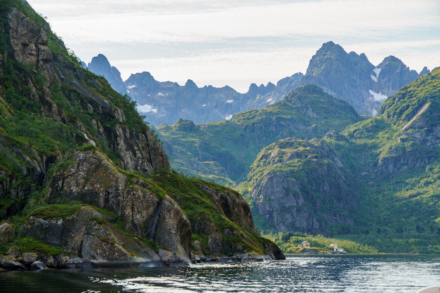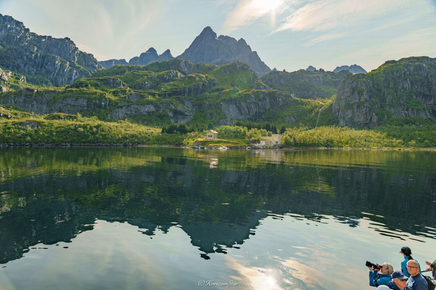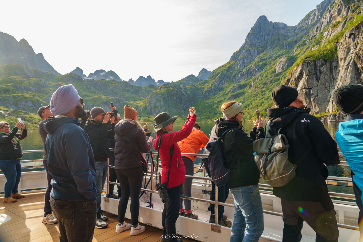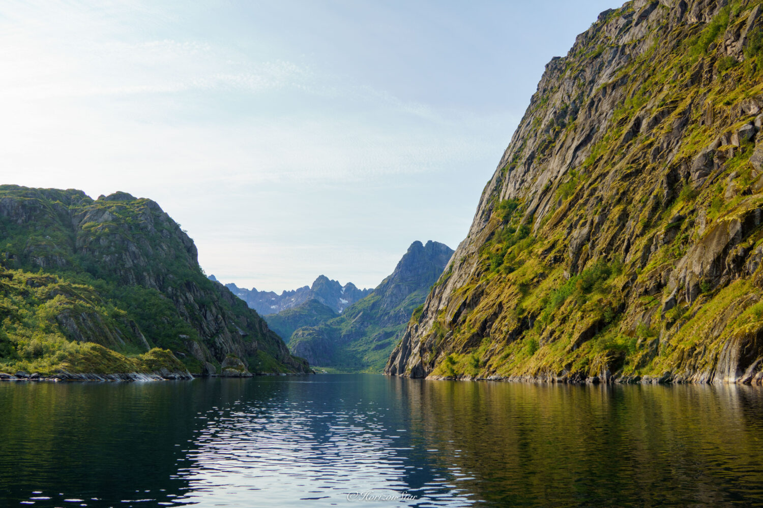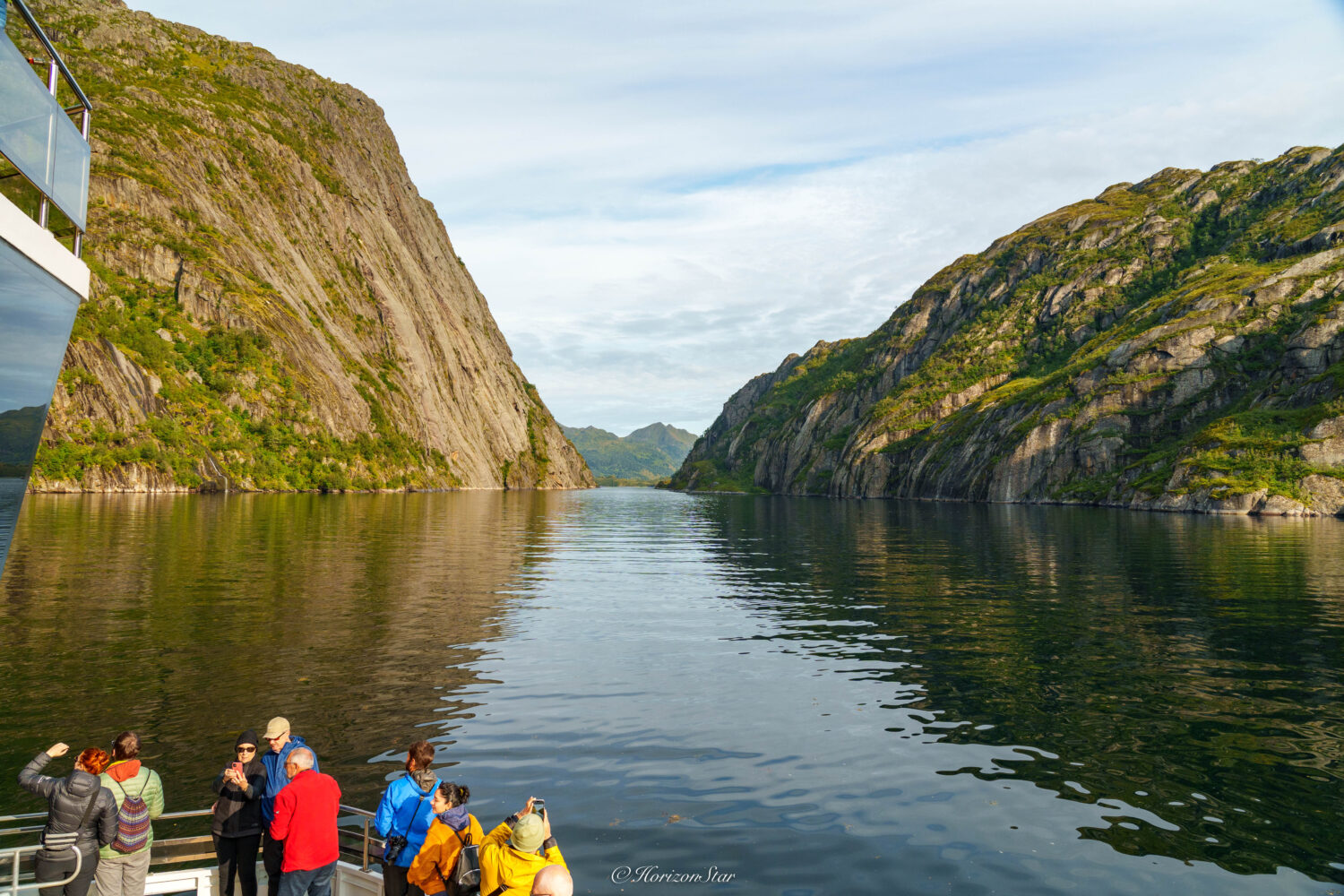 尽头本来有个瀑布,在1960年被改成了发电站。一年四季都有Svolvaer的游船拉人过来游览。水面平静了,但是太阳正好在头顶,可能上午来光线会好一点?