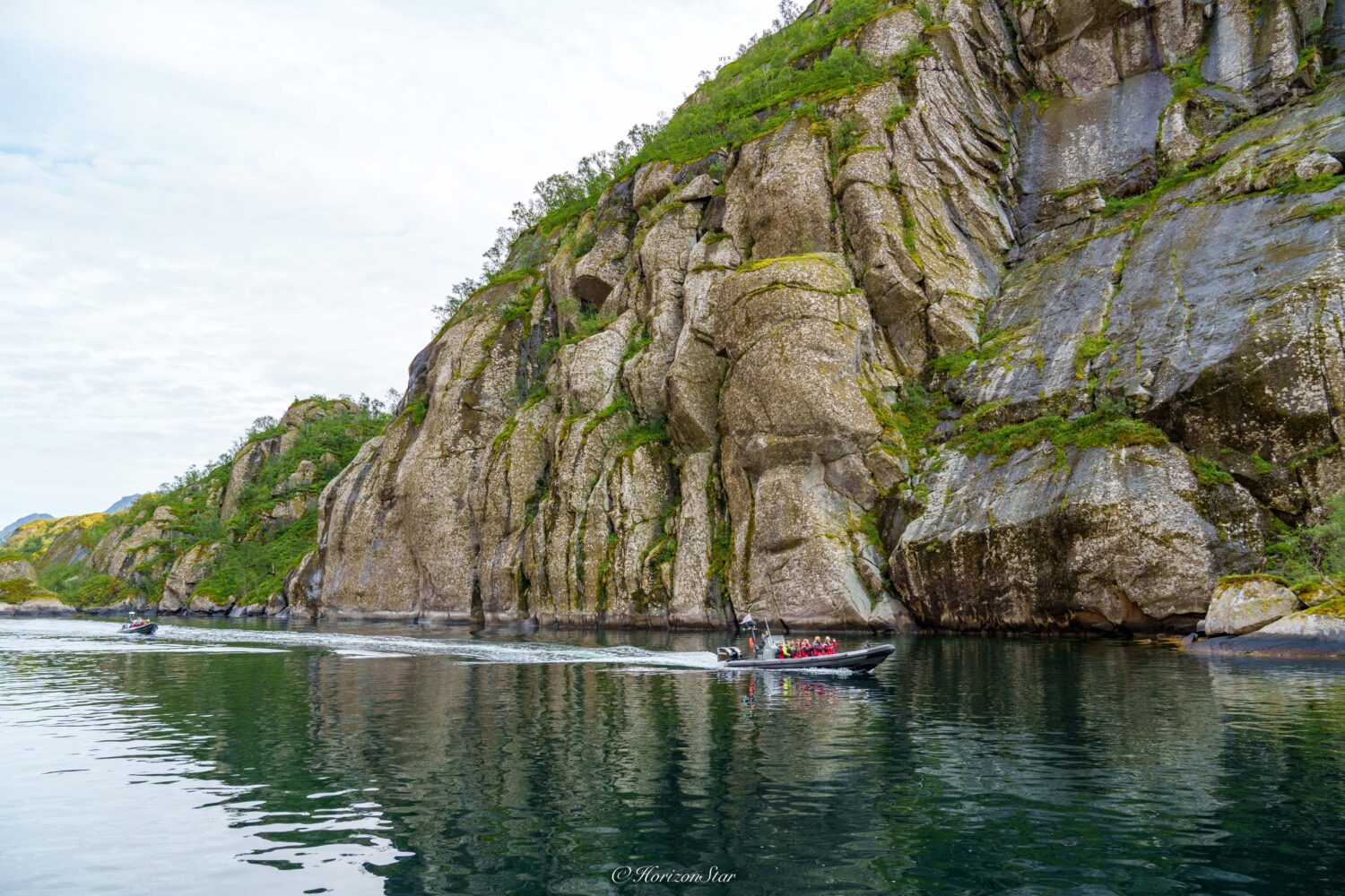 安静的离开峡湾,然后就传来引擎的轰鸣。两艘冲锋艇拉着人喧嚣的进来啦。从Svolvaer一路开过来也不近,还颠。幸亏当时脑子没抽抽,去订冲锋艇。
