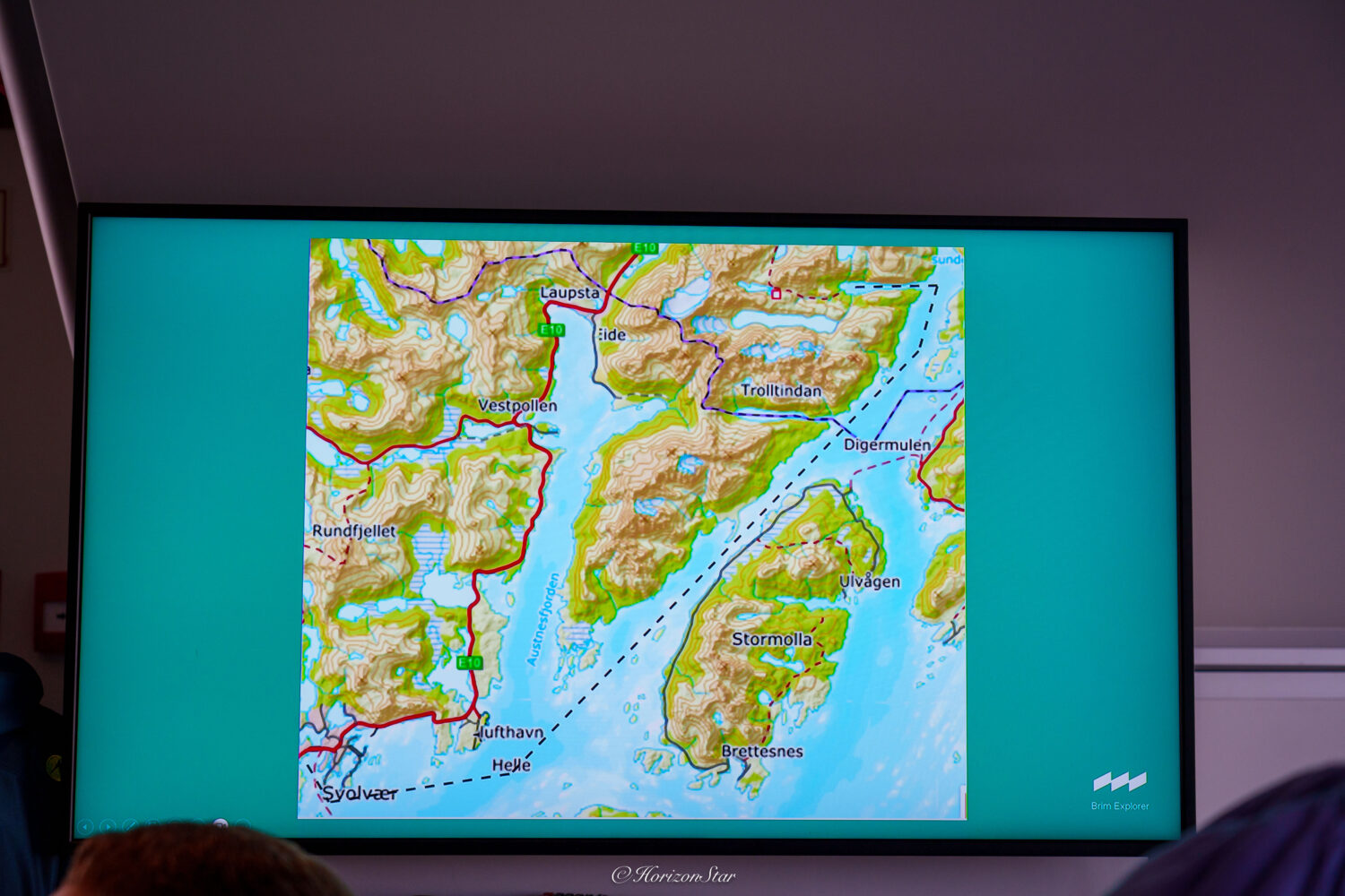 出了峡湾,船员们在甲板上往水下放了无人船,在船舱里的屏幕可以看到水下长长的水草森林,以及在里面逛森林的鱼。但是图像模模糊糊的,船上的游客也没多少人在意。大家都想着回家了。