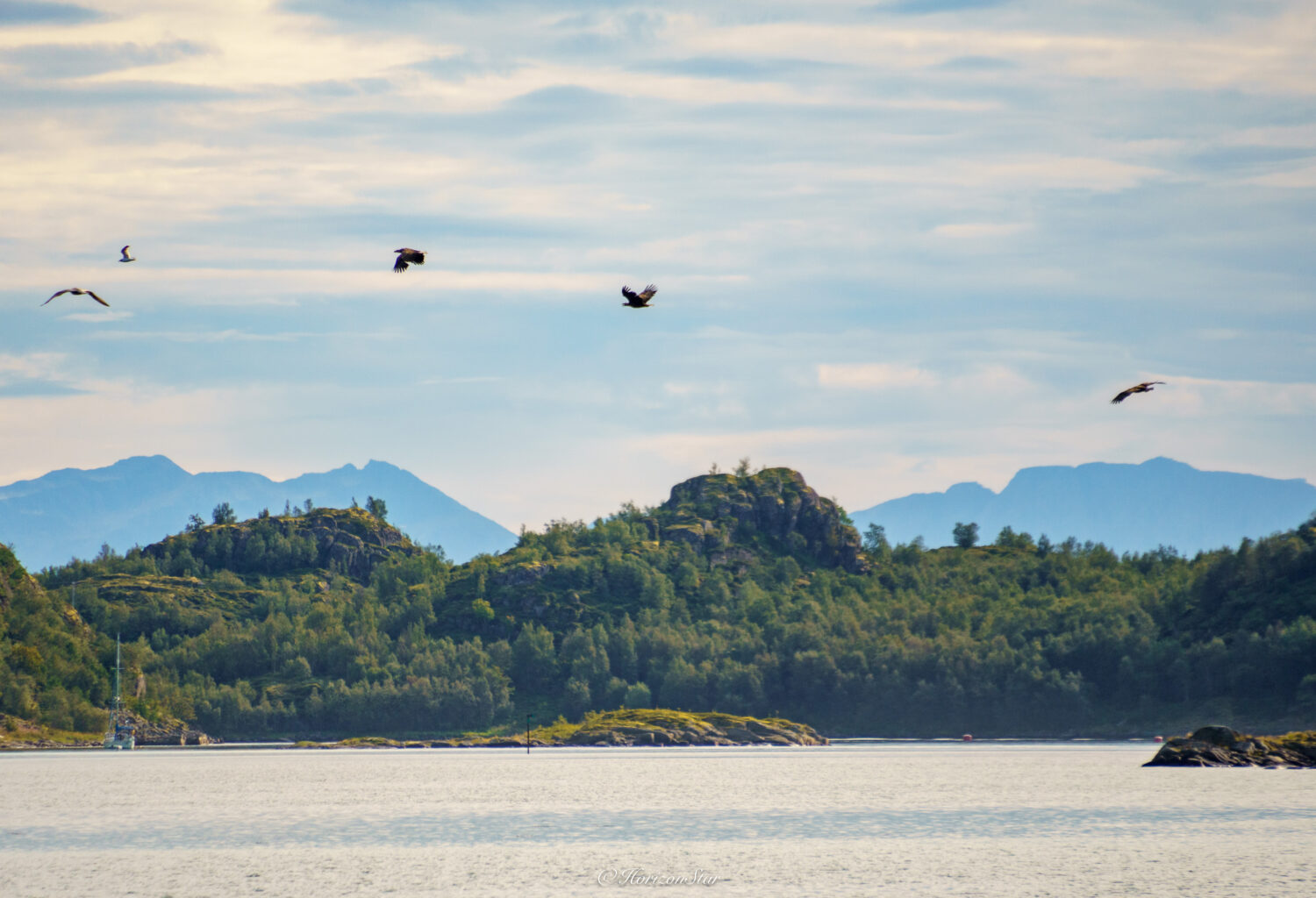 船上的介绍说如果我们Lucky,够幸运,会看到白尾鹰。但是现在天上乌泱泱一片一片的。