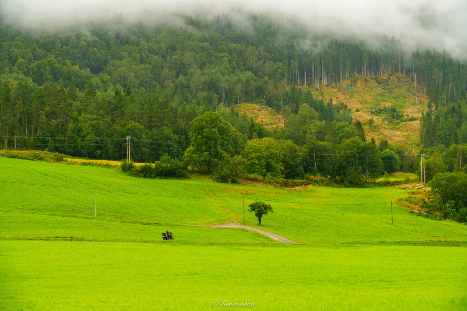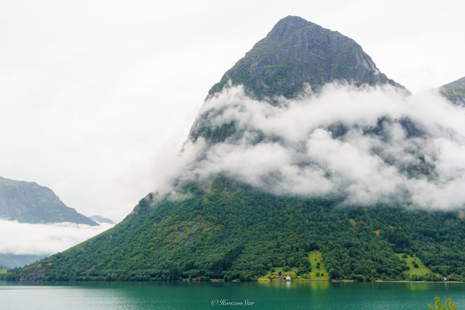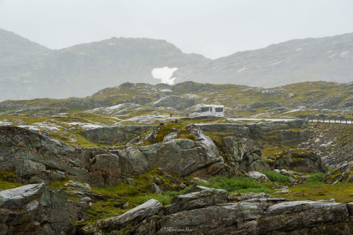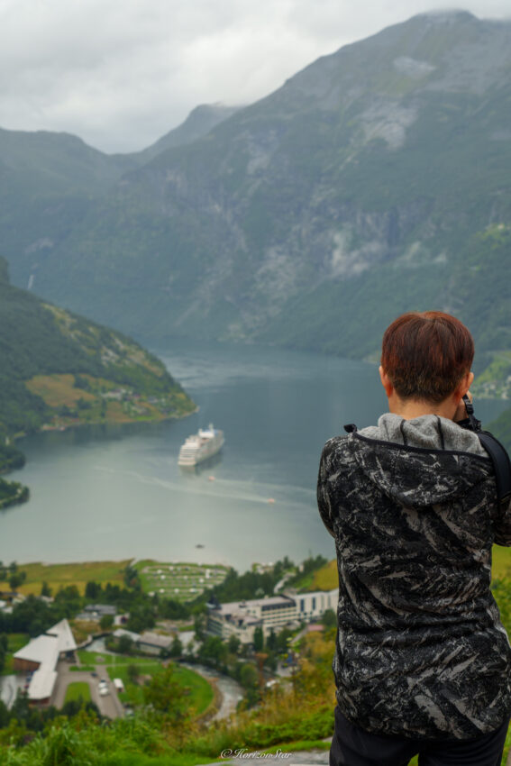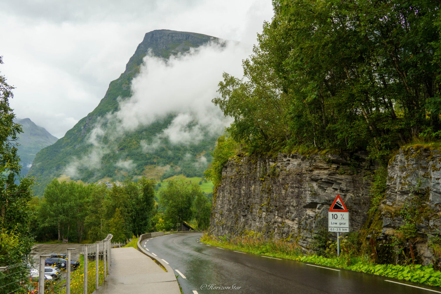 就打算在酒店多靠一会儿时间。不过看到云一会儿多一会儿少,大叔提议先离开酒店,去Geiranger山上的观景台那边靠时间,等天开吧。