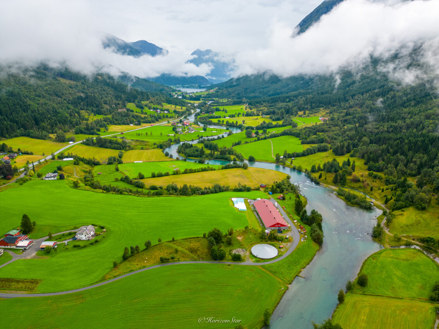 在狭窄的公路上来来回回调头,终于找到了Norsk Fjords Center停车场。