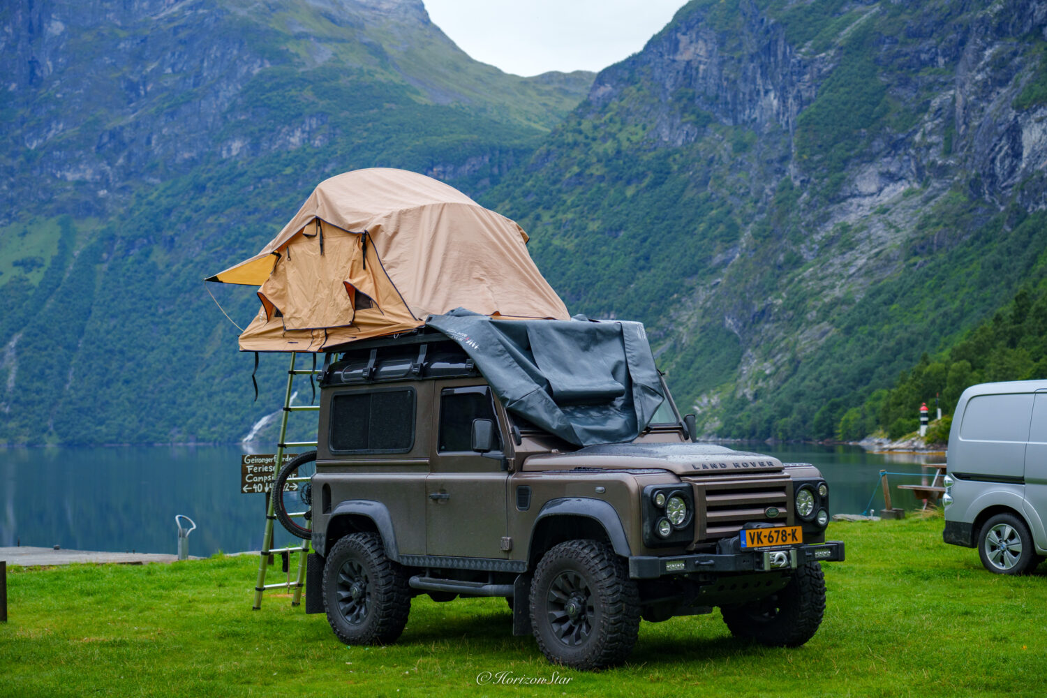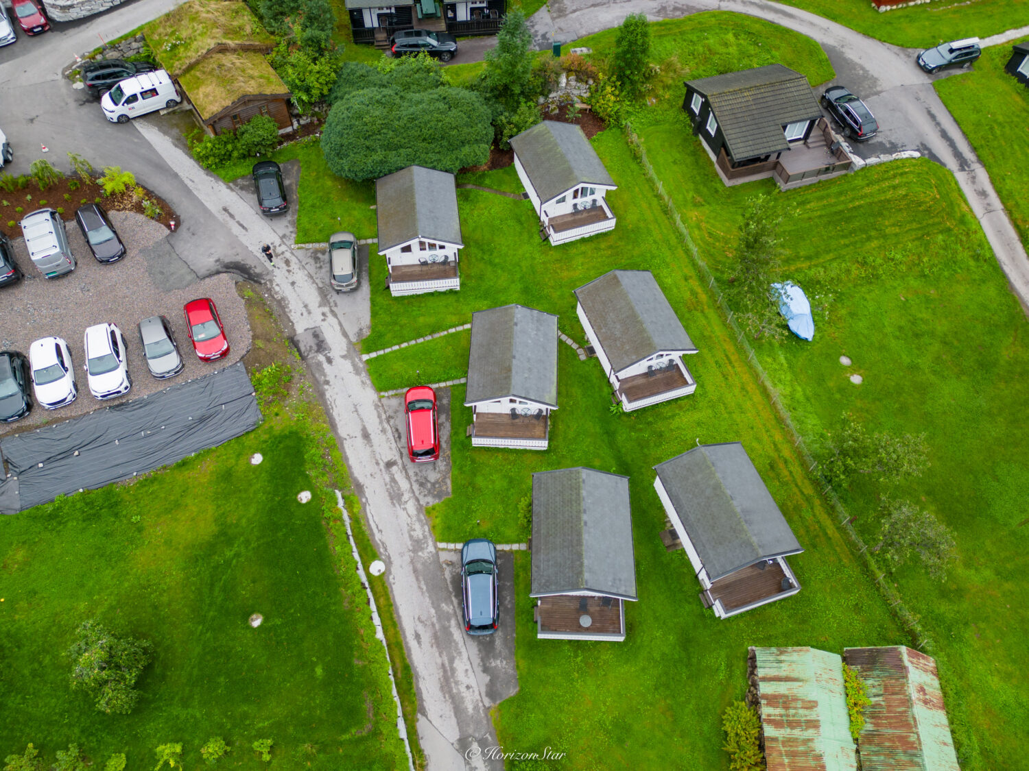 我们就赶紧撤了。费尽周折从好几群绝不让路的老人中把车开了出来,弯弯折折的下山。本想回房间一趟,一辆大货柜堵在营地入口,艰难的在窄窄的路上倒车,把它后面的小车吓得狂按喇叭。看距离估计要好一会儿他才能把货车倒着开到卸货平台,还是直接去Geiranger小镇吧。