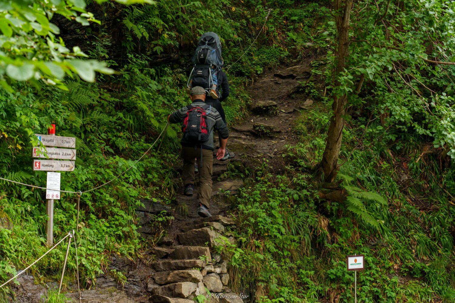终于到了著名的七姐妹瀑布,很高很高的山腰上,有个小木屋,应该也是hiking路线歇脚的地方。这个小屋垂直上去几十米处,还有一个小屋。挪威人都是属山羊的吧。