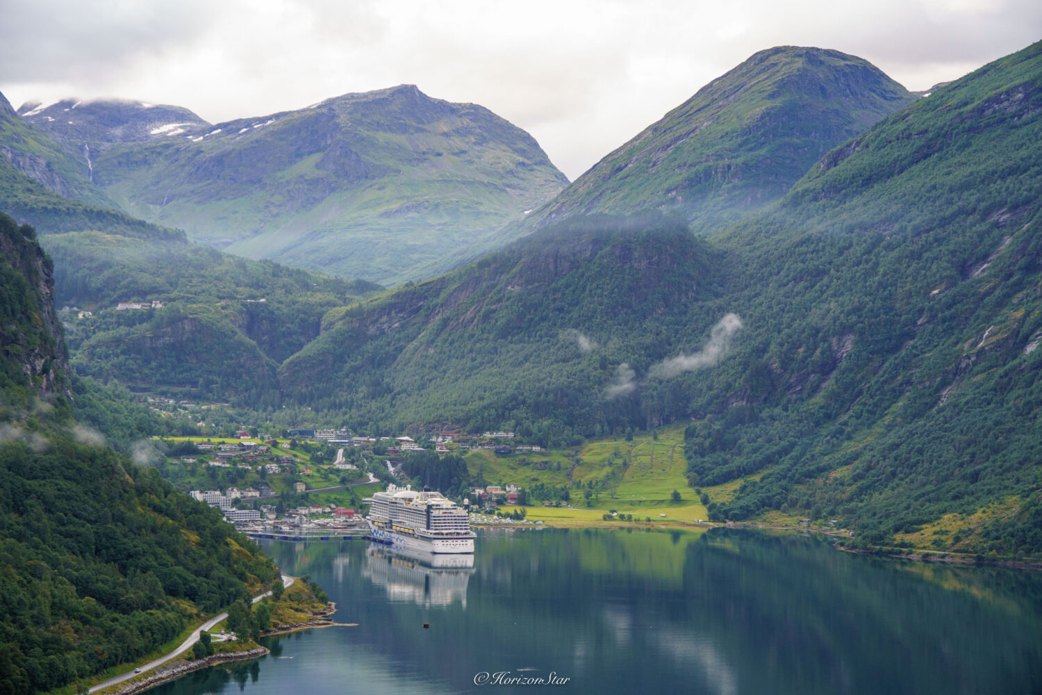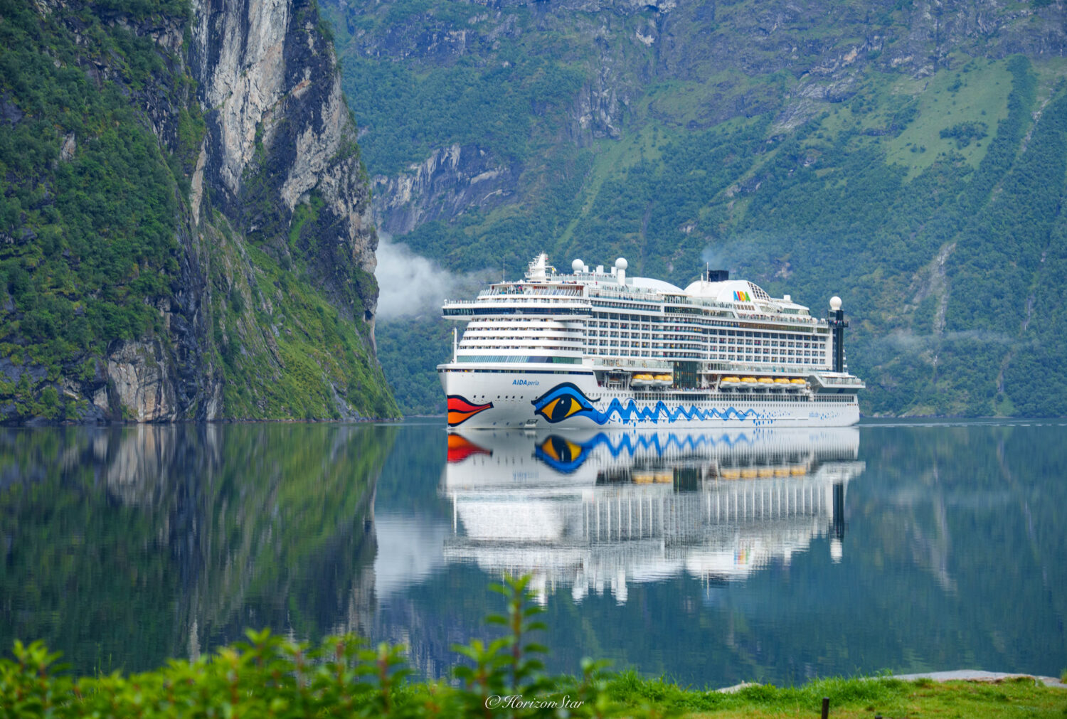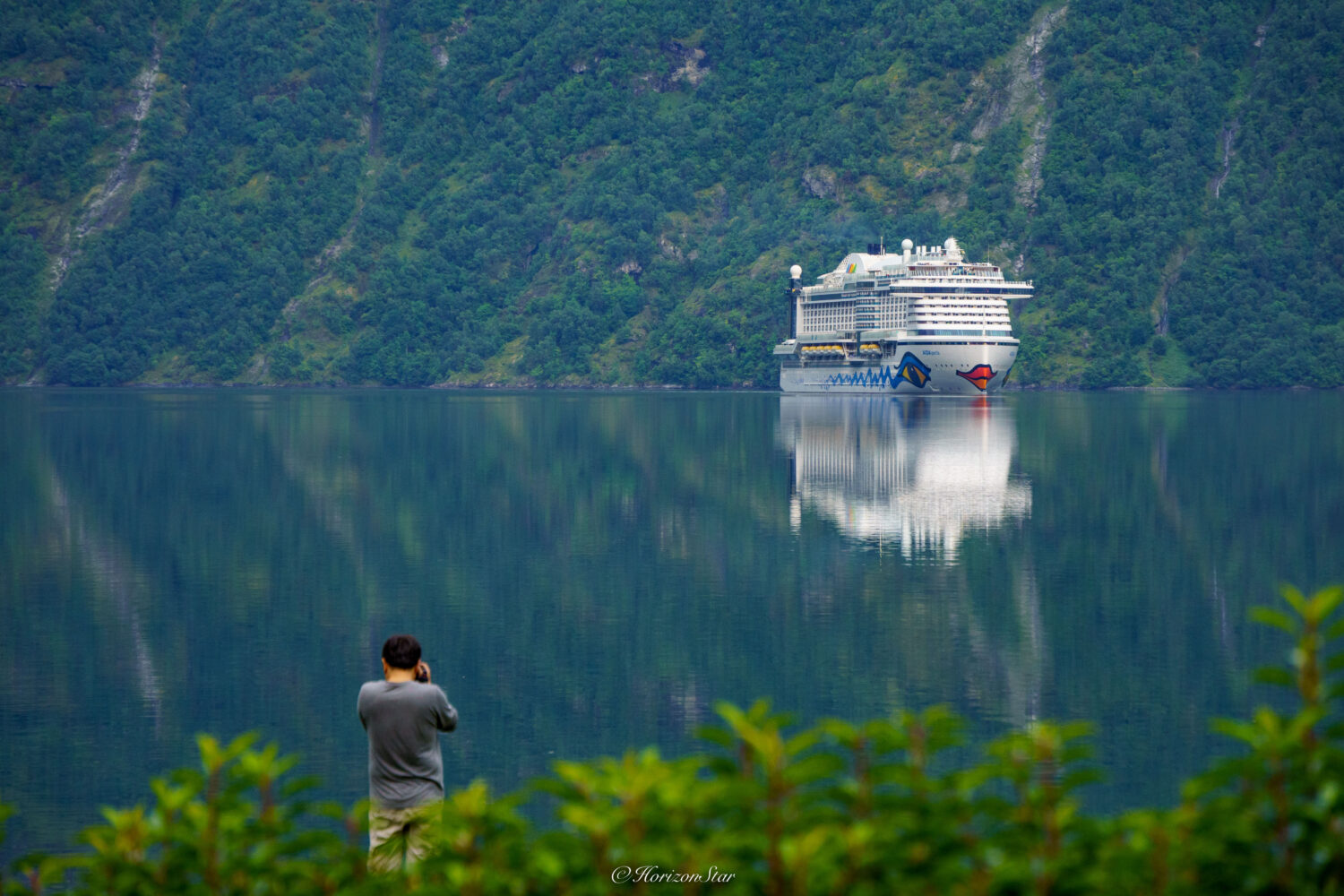一早烈焰红唇邮轮进港。和它真有缘分,在Bergen也看到它。