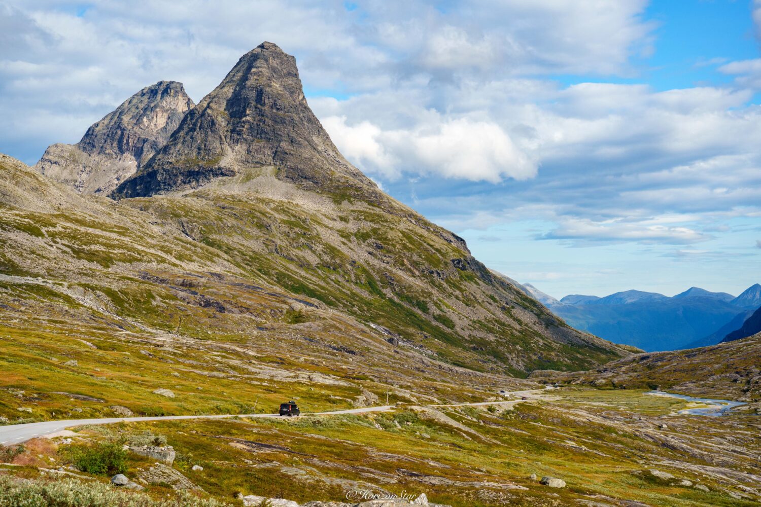 道路另一侧的双角一样的山峰,是魔鬼的双角,还是山精Troll的大鼻子?