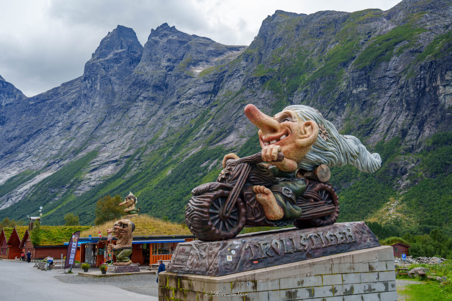 山底下有个Troll Icecream的小店,它的院子里有个特别酷的山精老太太,驾着摩托,享受着自由的风。老婆喜欢的不得了。