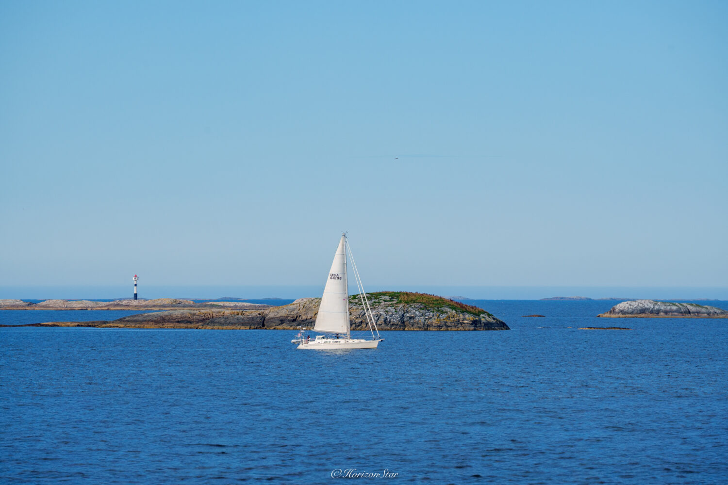 今天水面平静,风和日丽,帆船在海面上飘荡