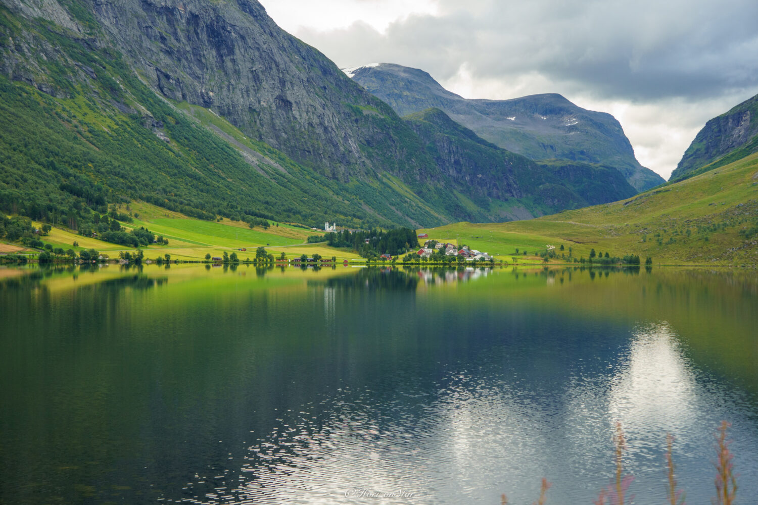 第一站下来风特别大。但是山峰超级棒。特别的北方大地的感觉。这才是这个纬度应该有的风光啊。挪威受大西洋暖流的影响,这一路都绿草茵茵,红方绿树,完全没有一点北国苍凉的样子。