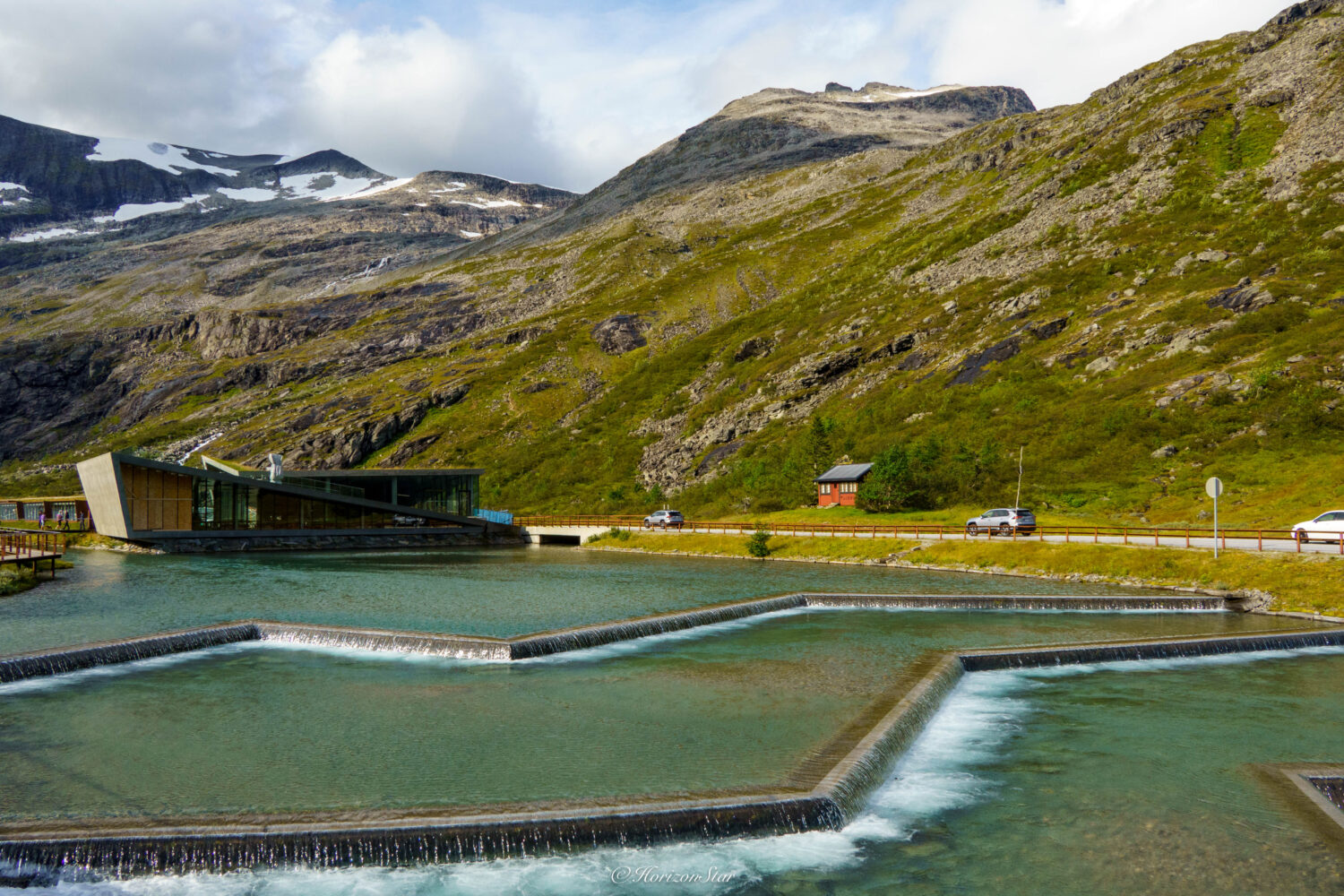 前面不远就是Trollstigen(精灵之路)的Visitor Center。穿过闹哄哄拥挤的纪念品店,就到了步道。