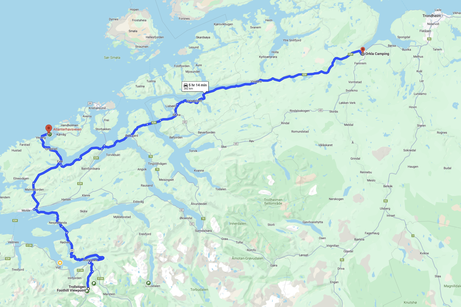 一路开到了Trondheim南边的Orkla Camping